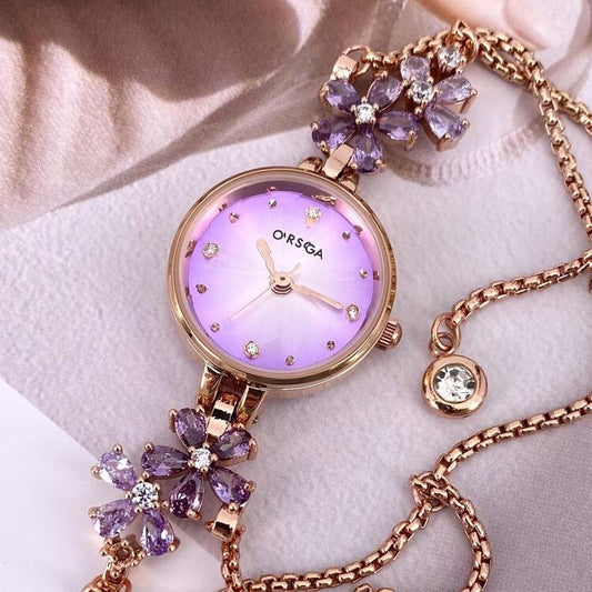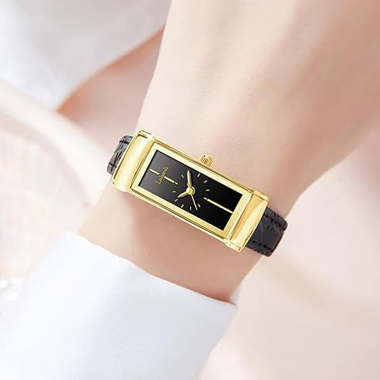 • ساعة نسائية بجلد أسود ولمسة ذهبية